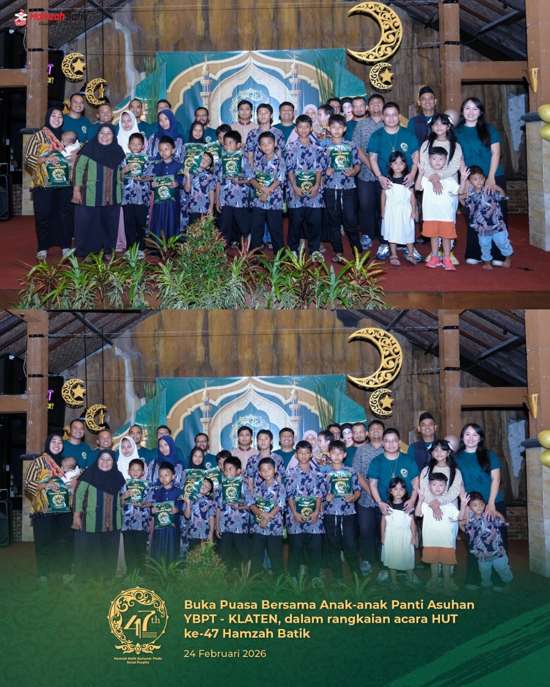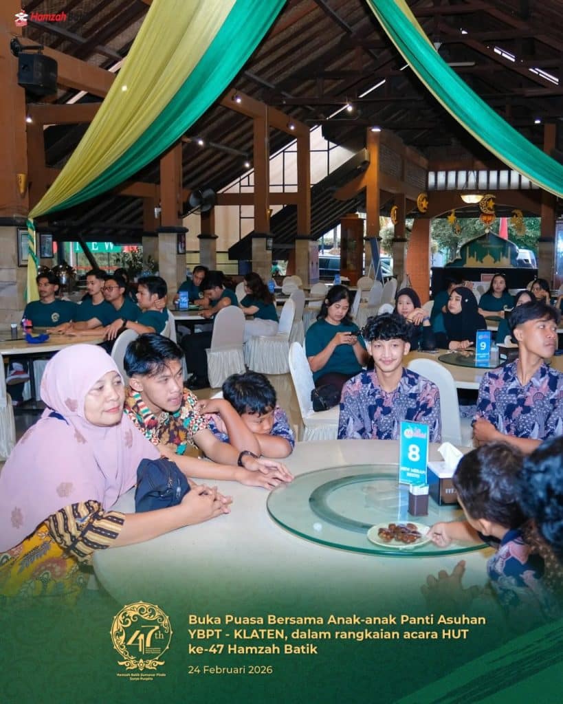 Yogyakarta, Selasa 24 Februari 2026 — Dalam rangka menyambut Hari Ulang Tahun ke-47, Hamzah Batik menyelenggarakan kegiatan buka puasa bersama anak-anak dari Panti Asuhan YBPT Klaten sebagai bentuk rasa syukur atas perjalanan panjang perusahaan serta wujud komitmen kepedulian sosial kepada masyarakat.